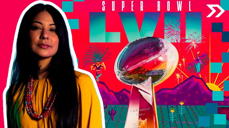 Lucinda “La Morena” Hinojos, una artista visual chicana e indígena de origen mexicano estadounidense, fue seleccionada para diseñar los boletos del Super Bowl LVII.