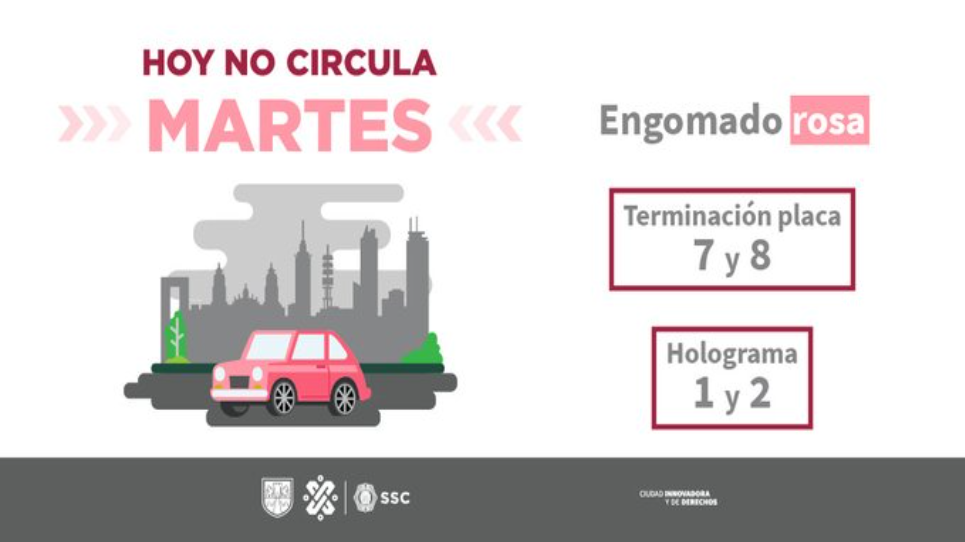 El Hoy no circula de este 22 de noviembre marca que en la Ciudad de México y el Estado de México todos los automóviles con engomado rosa, además de placas con terminación 7 y 8, con hologramas 1 y 2 no podrán circular.