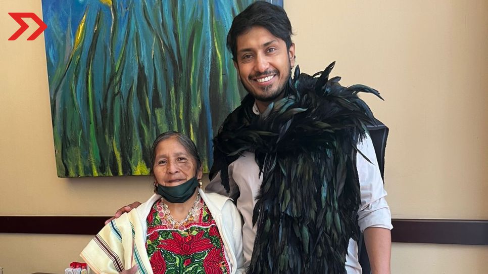 En Twitter, Tenoch Huerta mostró un retrato junto a Feliciana Hernández Bautista, como parte del encuentro que tuvo con la michoacana.