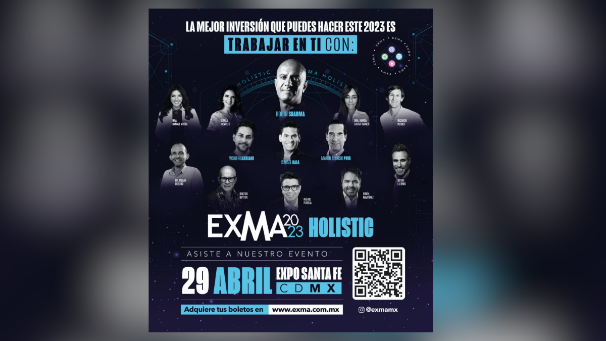 EXMA HOLISTIC se llevará a cabo el próximo 29 de abril en Expo Santa Fe, en la Ciudad de México y reunirá a más de 10 conferencistas internacionales, paneles de discusión y experiencias exclusivas en más de 9 horas de evento presencial con el fin de abatir el estrés laboral en México y mejorar la calidad de vida de los asistentes.
