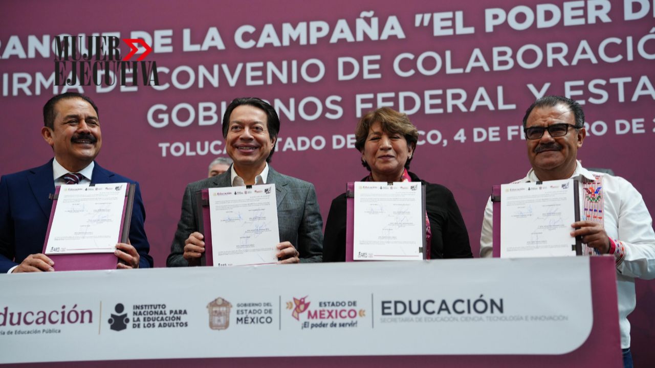 Durante la firma del convenio, la gobernadora de la entidad, Delfina Gómez, enfatizó que la educación es esencial para erradicar la pobreza, reducir las desigualdades y construir un entorno de paz.