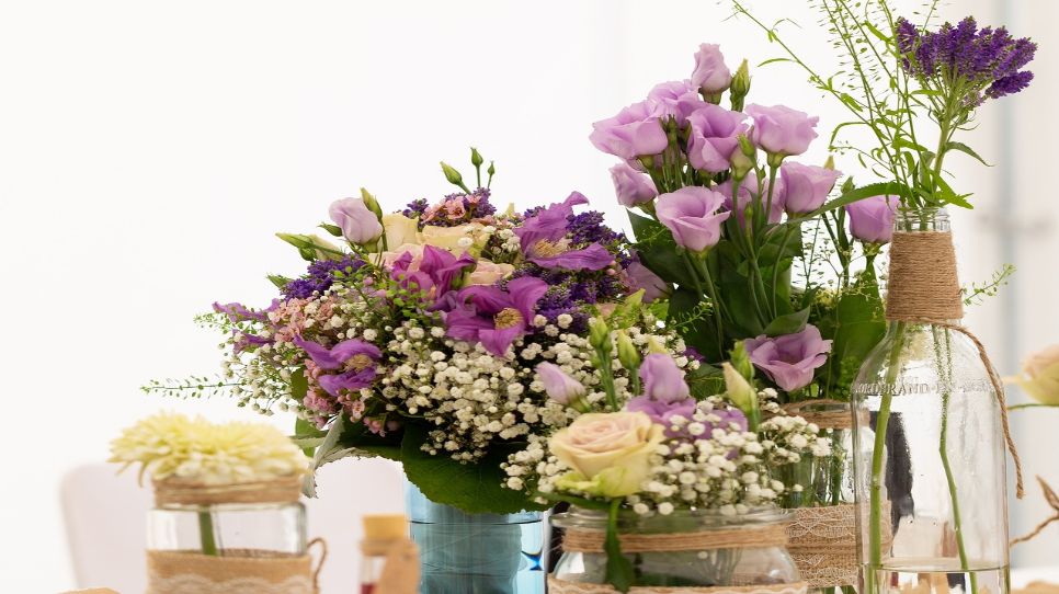 Floreros de botellas de vidrio recicladas