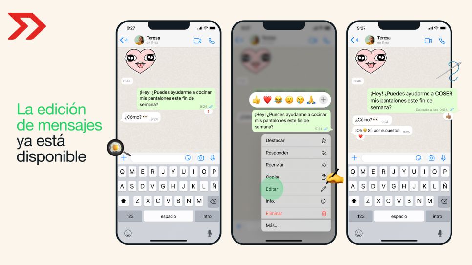 A través de esta herramienta, WhatsApp permite corregir desde errores ortográficos, hasta añadir información adicional o borrar partes del texto que en realidad no deseas enviar al destinatario.